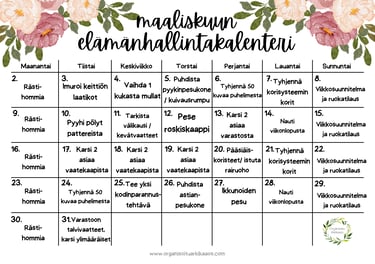 Ilmaisia resursseja siivoukseen, järjestelyyn ja kodin hallintaan.