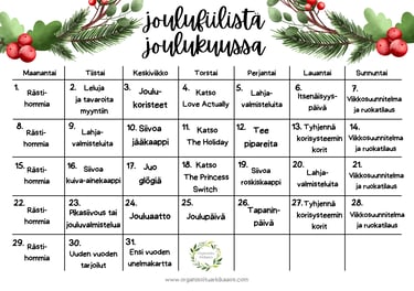 Tutustu ilmaisiiin siivousaikatauluihin ja järjestelytyökaluihin jo tänään. Muista seurata minua somessa, jotta saat parhaat vinkit näiden työkalujen käyttöönottoon. Suosittelen kuuntelemaan somessa, miksi listat on tehty tähän muotoon, etenkin jos ensimmäinen fiilis on että nämä ei toimi teidän kotona. Suosittelen kuuntelemaan avoimin mielin! Alla pikanapit eri listojen kategorioihin!