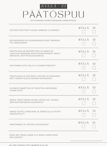 Kyllä/ei päätöspuu auttamaan hankintojen harkinnassa